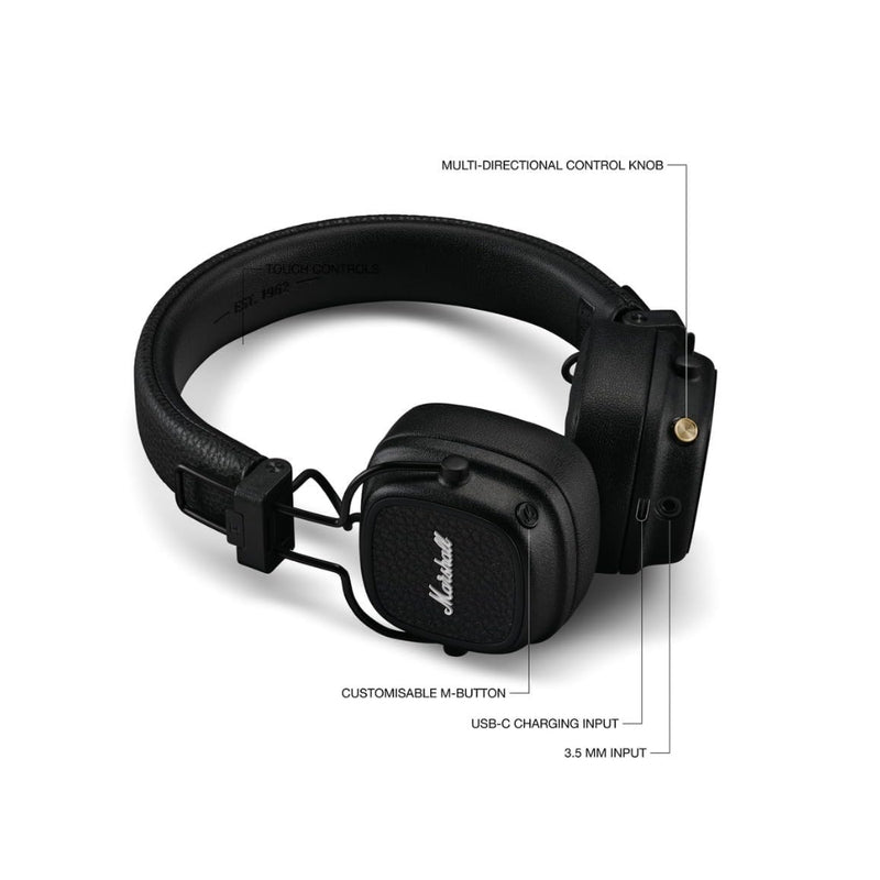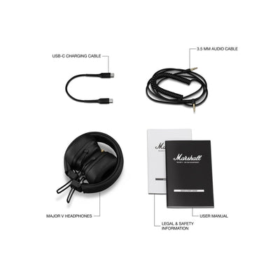 Audífono Marshall Major V Negro On Ear 100h carga inalámbrica