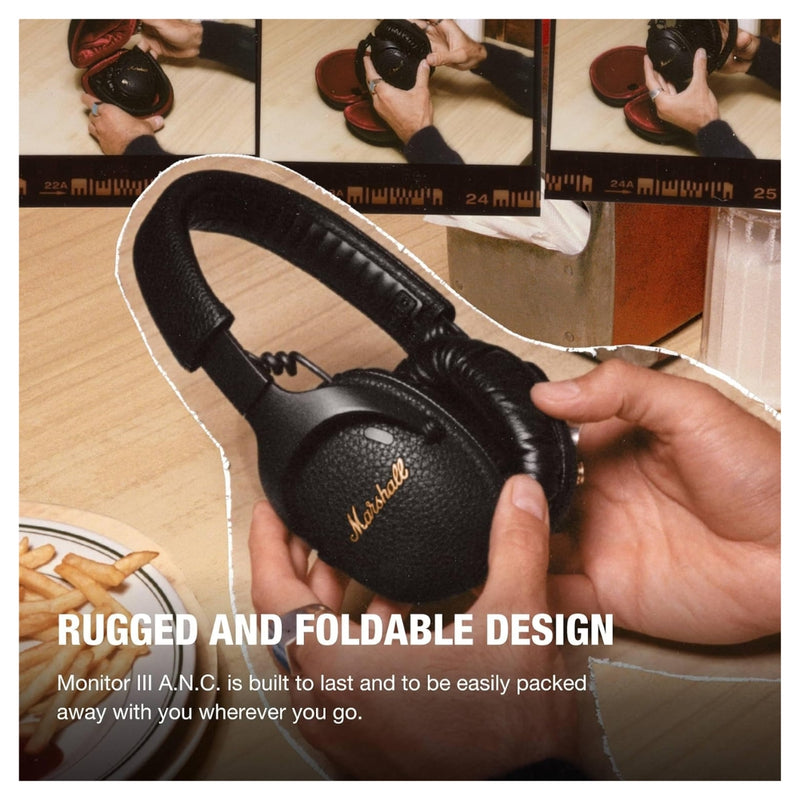 MARSHALL MONITOR III A.N.C. AURICULARES BLUETOOTH SOBRE LA OREJA | CANCELACIÓN ACTIVA DE RUIDO CON MICRÓFONO | MÁS DE 100 HORAS DE TIEMPO DE REPRODUCCIÓN INALÁMBRICA | DISEÑO LIGERO Y PLEGABLE