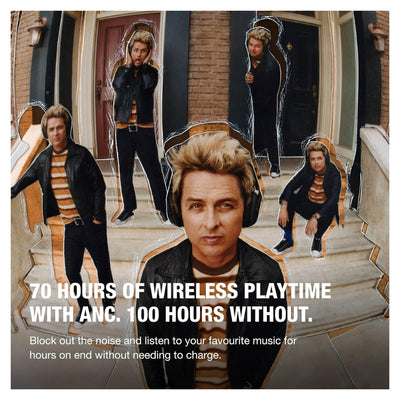 70 horas de reproducción inalámbrica con cancelación activa de ruido: 70 horas de reproducción inalámbrica con cancelación activa de ruido. 100 horas sin. Innumerables horas de escucha explosiva
