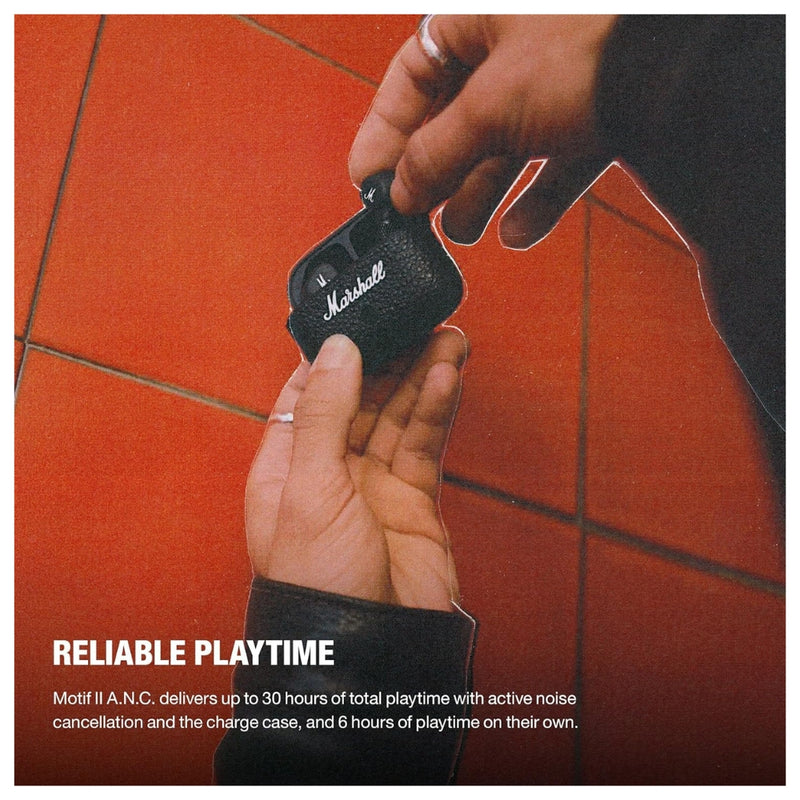 Sonido Original MARSHALL : Diseñado con precisión para darte un sonido claro y equilibrado sin importar cuánto subas el volumen, Motif II A.N.C. está construido para que no tengas que contenerte. Experimenta el sonido de calidad de concierto cuando quieras.