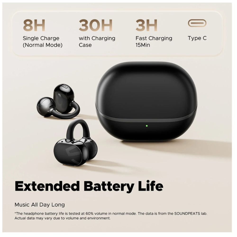 Audífono Soundpeats Pop Clip Negro 30h con anc IPX4