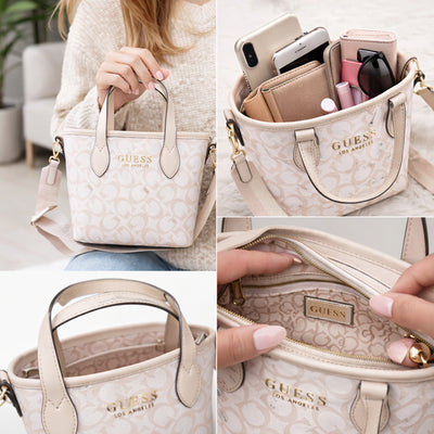 Cartera Guess Ashburn Mini Beige Monograma con Asas