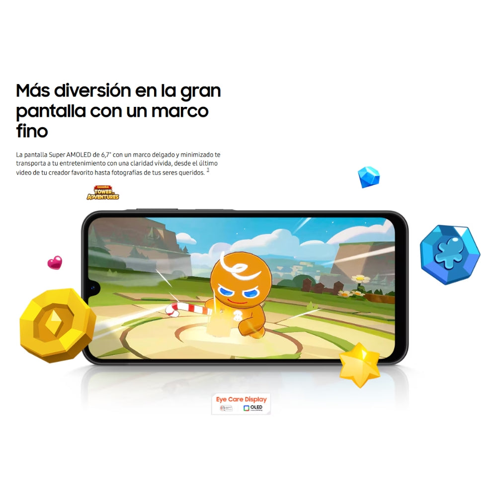 La pantalla Super AMOLED de 6,7" con un marco delgado y minimizado te transporta a tu entretenimiento con una claridad vívida, desde el último video de tu creador favorito hasta fotografías de tus seres queridos.