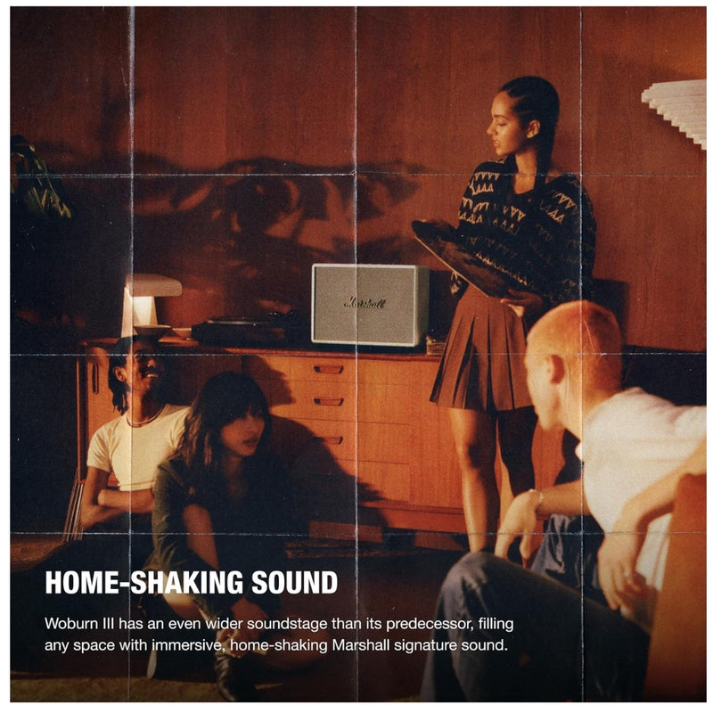 El Woburn III cuenta con un escenario sonoro más amplio que su predecesor, ofreciendo un sonido lleno y detallado que llena cualquier habitación. Su ingeniería de audio logra una calidad profesional, ideal tanto para escuchar música como para ver películas o programas. -