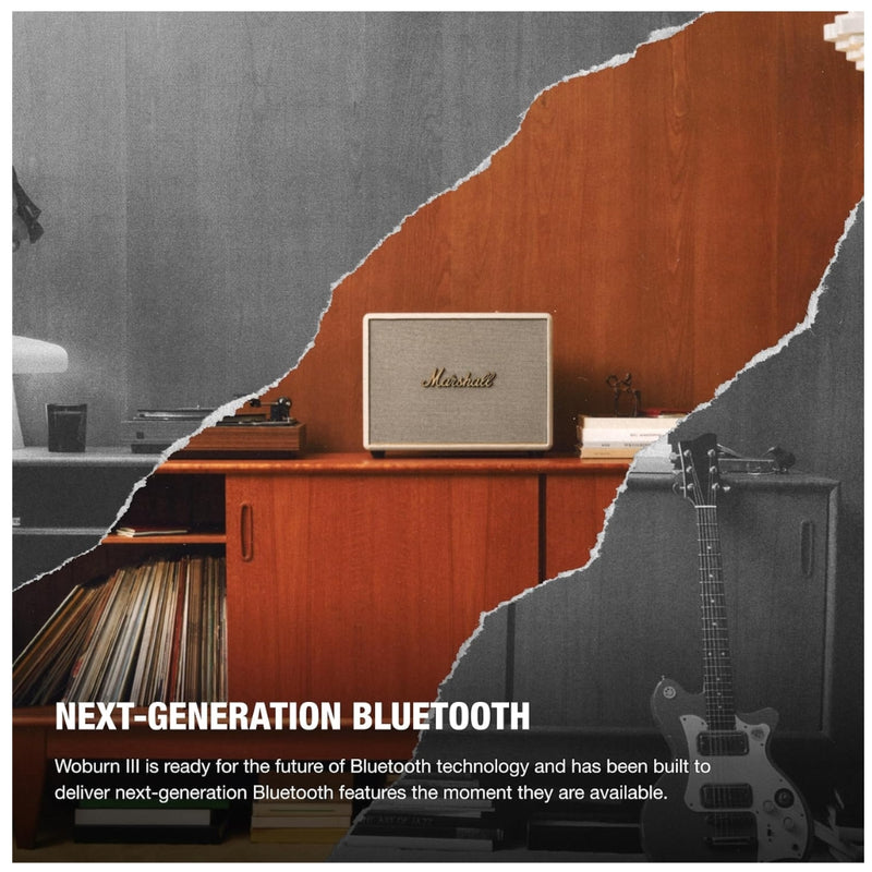 Con su conectividad Bluetooth de próxima generación, el Woburn III está preparado para el futuro, brindando una conexión más estable, rápida y eficiente. Además, su facilidad de uso permite emparejar y reproducir música al instante, sin configuraciones complicadas.