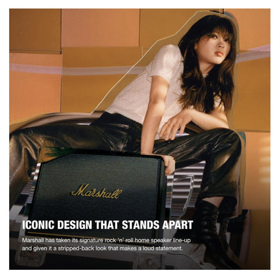 Su sonido característico, junto con la versatilidad de conexión (Bluetooth, HDMI, RCA y Aux), lo convierten en una opción ideal para quienes buscan una experiencia auditiva premium en el hogar o en espacios amplios. Además, su compromiso con la sostenibilidad refleja la evolución responsable de la icónica marca Marshall.